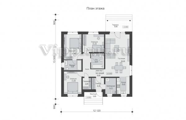 | Размеры дома: | 13.5м×12.12м |
